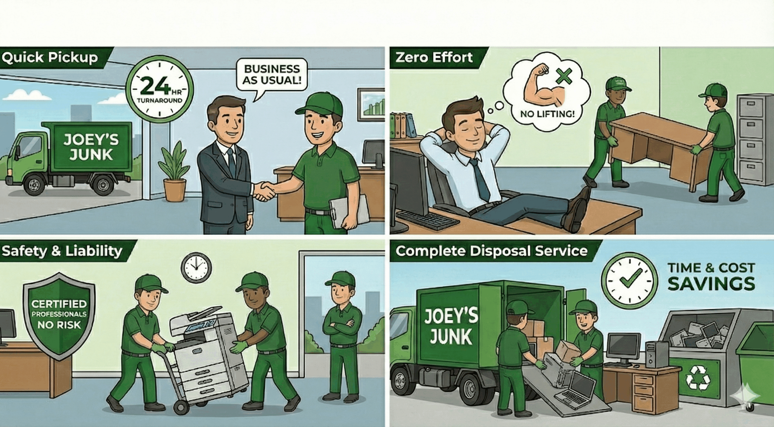 Eco-Guarantee: We prioritize donation and recycling. Your office junk is refurbished, reused, or responsibly disposed of—not sent straight to the landfill.